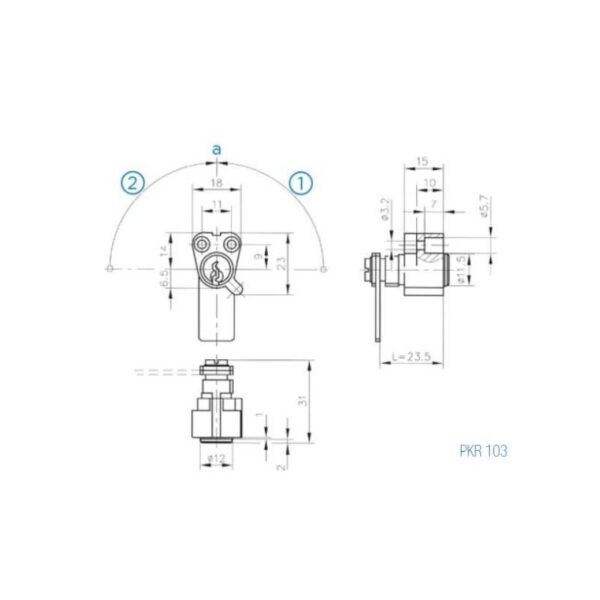 Ključavnica za zaklepanje nabiralnikov in podobne kovinske opreme. V kompletu sta 2 ključa, rozeta, zapah in 2 vijaka.